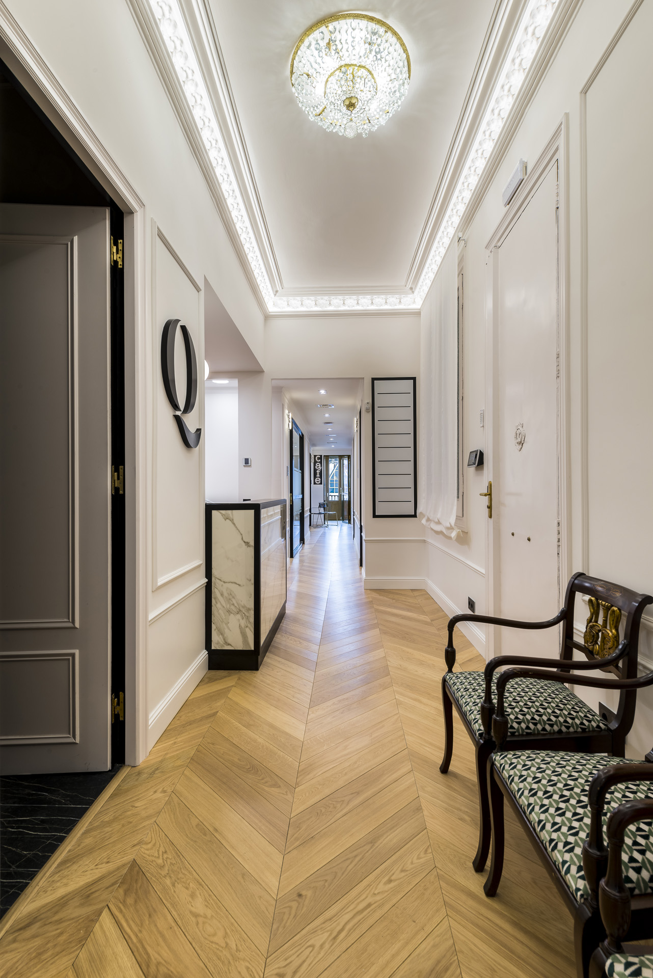 “Precisament de la seva ubicació prime, el Quadrat d’Or de Barcelona, és d’on procedeix el nom de Qdoor, i d’on la família s’ha inspirat a renovar els espais i transformar-los, des del 2019, en un espai únic de 2 plantes d’un total de 450m2 amb 12 exclusives oficines i donant com a resultat una perfecta barreja entre tradició i modernitat.”