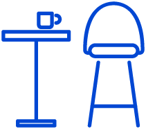 Son ideales para desconectar, desayunar, comer, leer la prensa,… y conectar y compartir con el resto de miembros Qdoor o incluso trabajar con el portátil o atender puntualmente algún cliente de manera más informal.